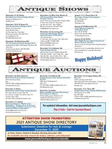 Antiquities,” “Antique Arms & Armour” For updated information, visit www.journalofantiques.com